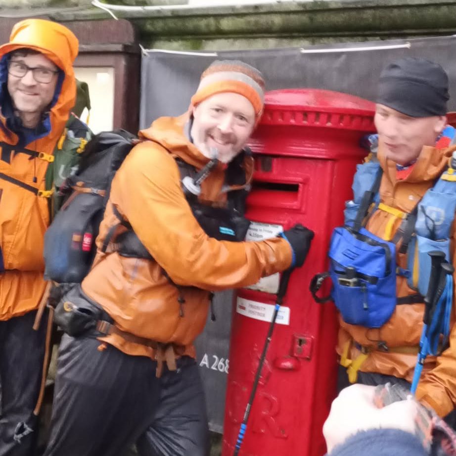In retrospect I should have taken some more painkillers towards the end (I try to avoid them) – as the seemingly endless descent through bogs down to Hawes went on, and on, and on. Eventually though, we hacked in through the back of Hawes, gentle jog being achieved, and gave the post box at the end of the route a traditional hug (near Checkpoint 2 for the main Spine) a hug, 53 hours and 18 minutes in.