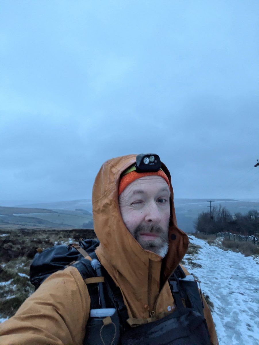 So, the race – and the mental side of it. If you’re reading this, you probably know the score – the Pennine Way, 108 miles / 173kmish of running and hiking up and down hills (5900 metres of them) carrying all the kit you’d need to be self sufficient (in my case with food around 11-12kg in total), all the weather that January in the UK can throw at you, all the bogs that you could sink into.